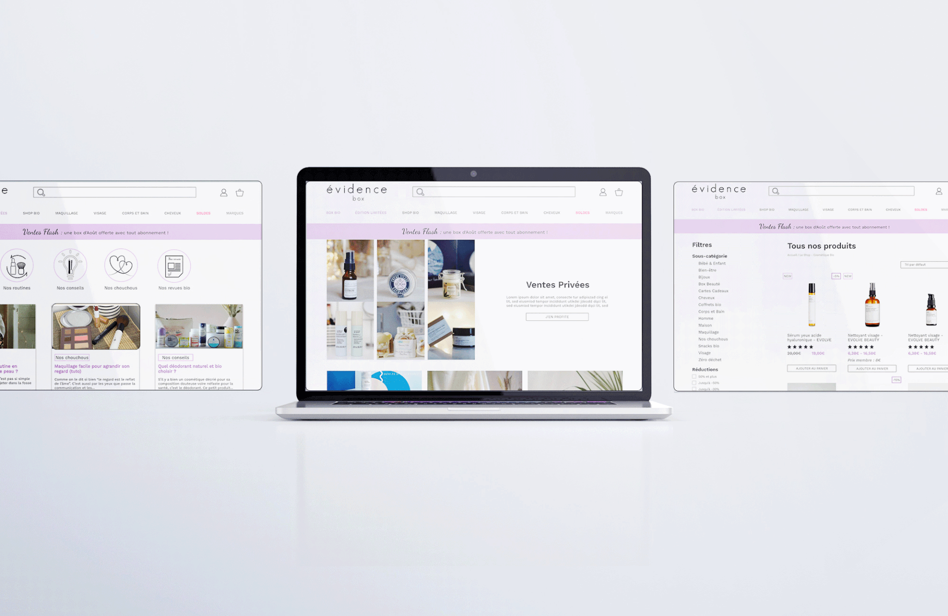 Démonstration de la maquette en version ordinateur. Consultez la maquette de Box Evidence ici.